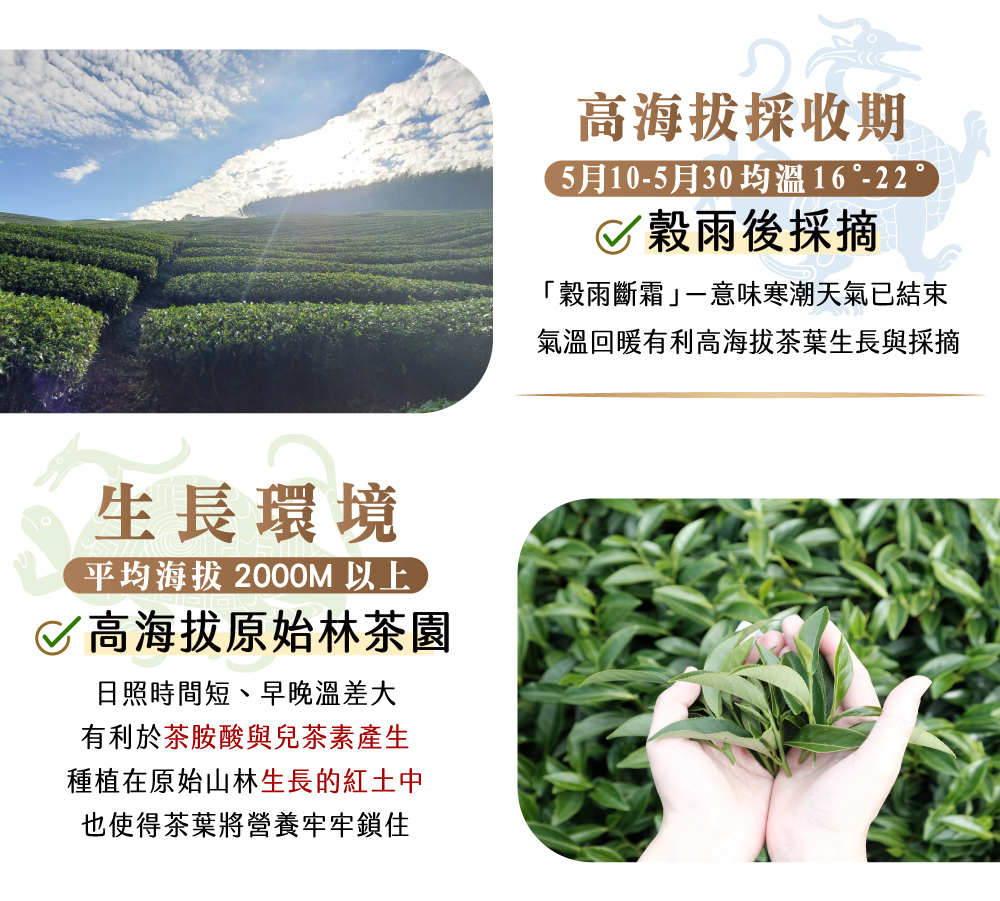 ■ 茶葉規格:大禹嶺/福壽山/華岡/奇萊山,共半斤(75±3gx4包)